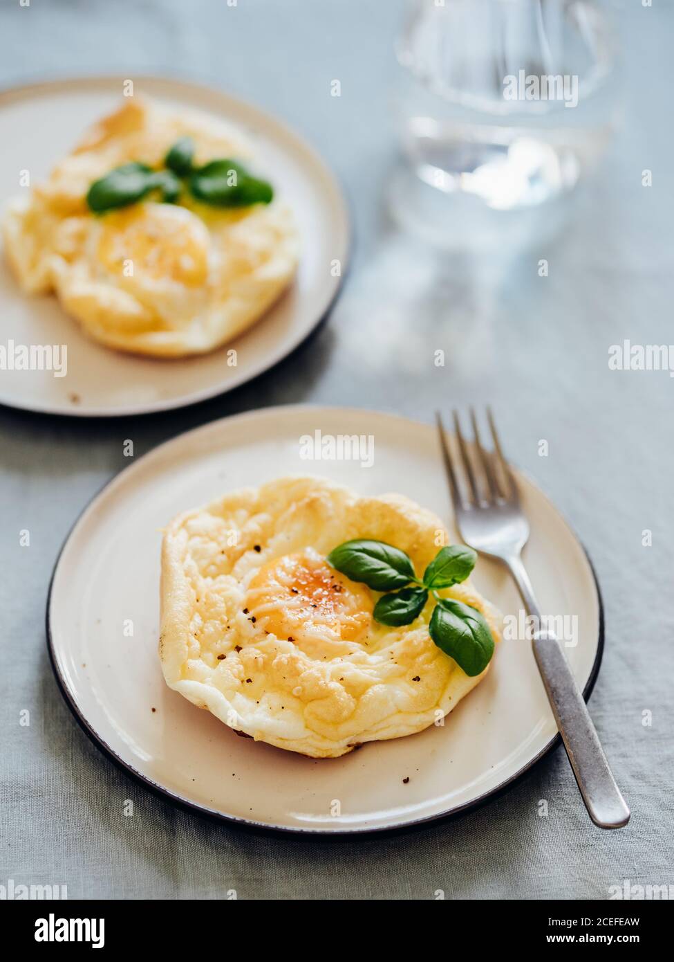 Bake uncovered for 10 minutes, then stir, and bake an additional 10 to 15 minutes, or until eggs are set. Advertisement step 2 pour melted butter into a glass 9x13 inch baking dish. You want a few bigger curds of white and yolk visible in there. Pour egg mixture into the baking dish and bake uncovered for 10 minutes. Preheat your oven to 200⁰f/95⁰c, steam setting (100% humidity).